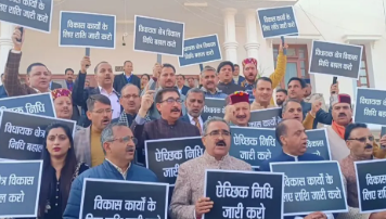 समाधान भारत शिमला:-हिमाचल प्रदेश विधानसभा के शीतकालीन सत्र की कार्यवाही शुरू होने से पहले गुरुवार सुबह विपक्ष ने विधानसभा परिसर में जोरदार प्रदर्शन किया। भाजपा विधायकों ने हाथों में तख्तियां उठाकर धारा 118 में प्रस्तावित संशोधन के खिलाफ नारे लगाए और प्रदेश में आई आपदा को लेकर सरकार पर राजनीति करने का आरोप लगाया। नेता प्रतिपक्ष जयराम ठाकुर की अगुवाई में हुए इस प्रदर्शन के दौरान उन्होंने कहा कि राज्य के बड़े हिस्से को आपदा ने प्रभावित किया है।